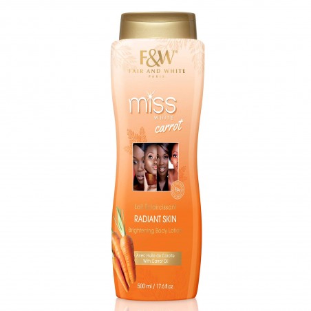 Le lait de carotte F&W a un parfum légèrement sucré et agit pour purifier et unifier le teint tout en nourrissant le corps grâce à une combinaison d'ingrédients actifs blanchissants et d'émollients. Contient de l'huile de carotte, connue pour ses bienfaits nourrissants, revitalisants et antioxydants. Aide à redonner éclat, douceur et clarté à votre peau. Idéal en complément du savon aux carottes F&W.